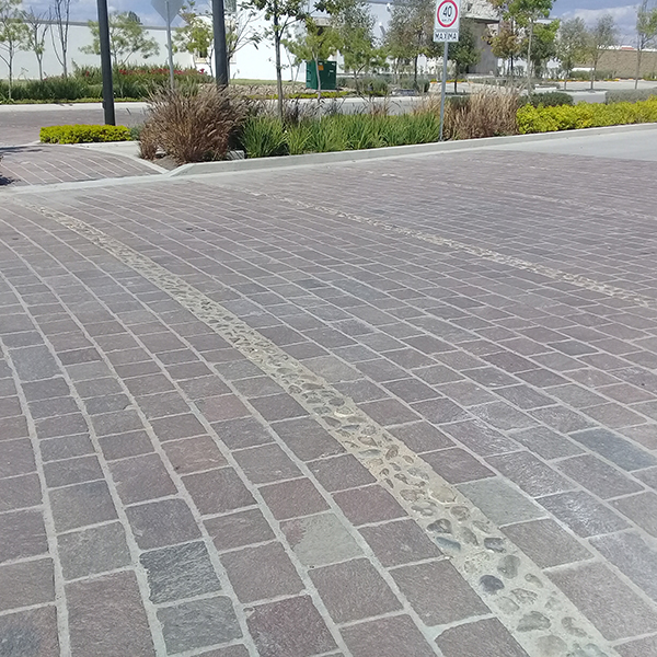 Representa una selección particular de baldosas con plano natural, obtenidas del corte de lajas naturales con prensas oleodinámicas a presión, por medio de este procedimiento las baldosas toman formas rectangular o cuadrada con los costados elaborados con ángulos y bordes rugosos