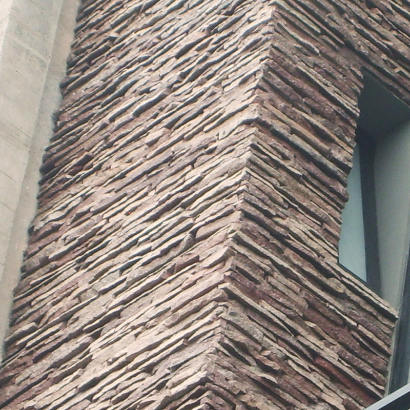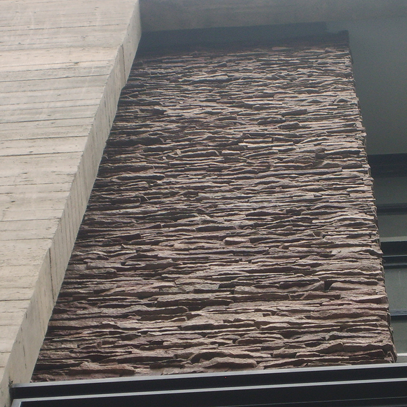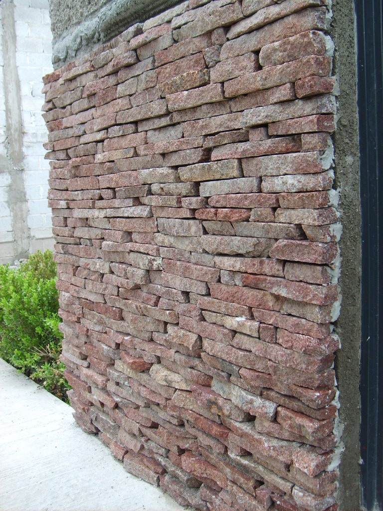 Representa una selección especial de piedra para recubrimiento de muros con un corte a disco que permite colocar con pegazulejo, son tiras con forma rectangular, con medidas de anchos irregulares y largos variables que se colocan de canto a la vista.