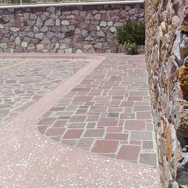 Representa una selección particular de baldosas con plano natural, obtenidas del corte de lajas naturales con prensas oleodinámicas a presión, por medio de este procedimiento las baldosas toman formas rectangular o cuadrada con los costados elaborados con ángulos y bordes rugosos